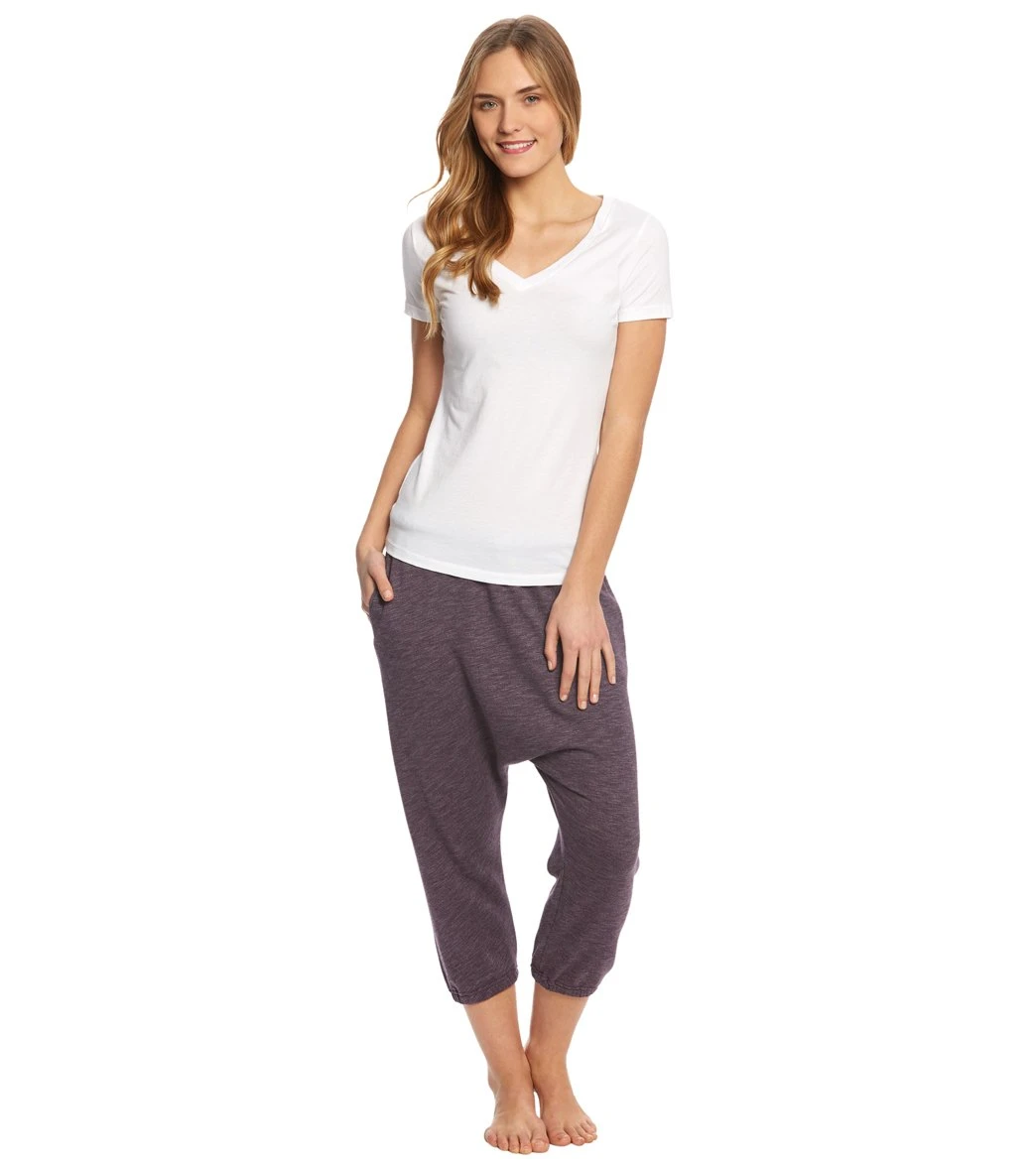 Soft, slouchy and comfortable, the Harem Capris work for lounging or stretch sessions. A drawstring waist provides needed security. Striated details add style points to this casual-feeling wear.