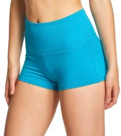 Show off the perfect amount of skin for any heated workout with these Mika Yoga Wear Bella High Waist Yoga Shorts. The double paneled high waistband offers secure coverage around the waist, while a ruched back gives a retro look that is also flattering for your shape.